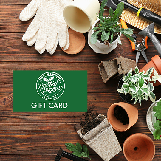 Rooted Promise's new accessory is a celebration of the garden's magic, now available as a $50 gift card. Perfect for the eco-conscious gardener, this card opens a world of American-made gardening innovations designed to empower every grower. From Grow Rings that nurture plants efficiently to sustainable Garden Kits, each product promises a greener, more abundant garden. Ideal for those looking to share or enhance their gardening journey, this gift card is your invitation to join a community dedicated to growth, sustainability, and giving back. Explore Rooted Promise and cultivate a garden full of potential.